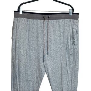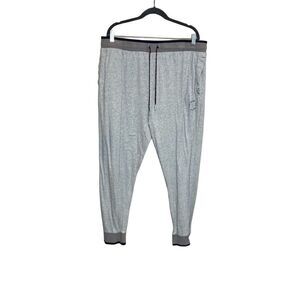 Ted Baker London gray jogger pants size XL. Drawstring and elastic waistband. Burgundy and blue trim. Front pockets. Good condition. 95% cotton 5% elastane. Waist 19” Rise 14” Inseam 29”.