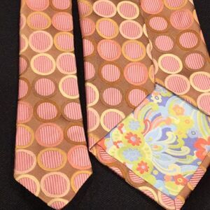 Ted Baker silk tie, taupe, pink and tan. In great shape, well made, solid feel to the fabric.