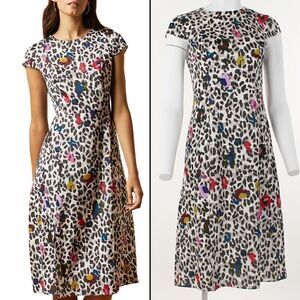 Leopard print gets a happy refresh with the bright spots layered over this fitted georgette dress with dual front slits for breezy, elegant movement. Style Name: Ted Baker London Stelaar Wilderness Dress. Size is 1 which translates to S or 2/4 US.
