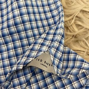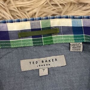 Ted baker plaid dress shirt in a size 7. See pics for size chart. 24” bust 30” length