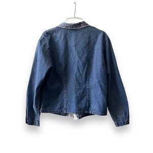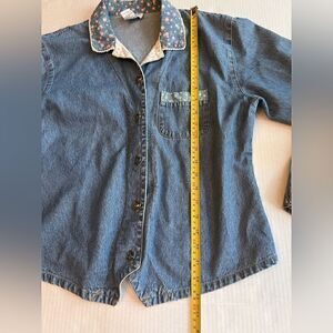 Such a cute vintage jacket. It features a flower print around the collar and pocket, metal heart buttons, and a curved hem. Vintage Y2K. In great condition. See pictures for details and measurements.