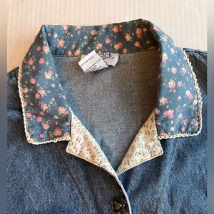 Teddi Denim Button Down Short Women’s PM Heart Buttons Flowers Vintage