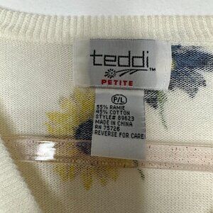 Teddi Floral Cardigan Sweater Petite Size L Daisies Cotton Ramie Boho