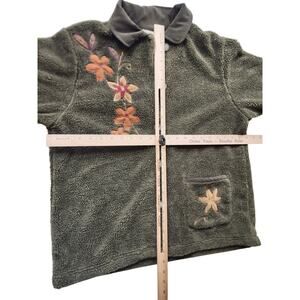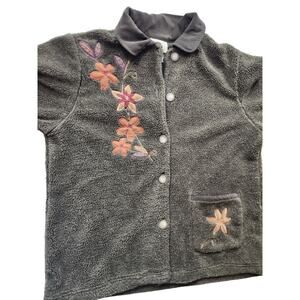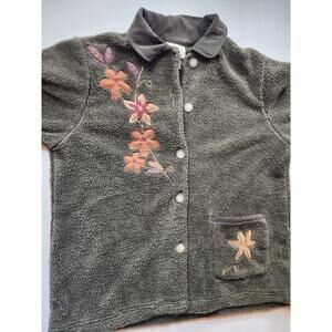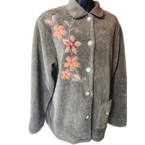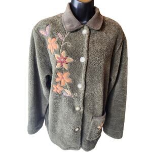 Teddi Floral Embroidered Button Up Sherpa Fleece Jacket Womens Large Cozy Warm Fall Layer Cottagecore Sweater
