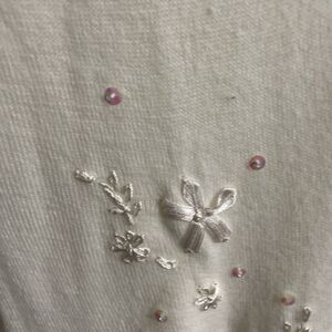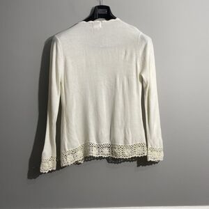 Teddi Knit Cardigan – Embroidered Floral Cream Sweater, Size Large, Soft Cottage
