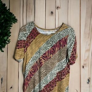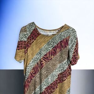 With its flattering cut and petite medium size, this dress complements your figure beautifully, enhancing your natural charm. The Teddi Brand Safari Animal Print Maxi