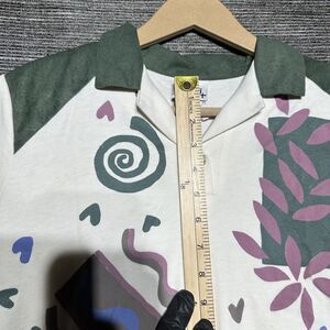 Teddi Sport Polo Shirt Women's Size S White Green Long Sleeve Vintage Floral