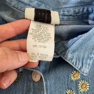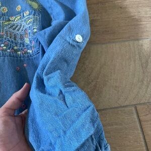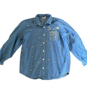Teddi Vintage Denim Floral Embroidered Denim Button Down Shirt Women's Medium