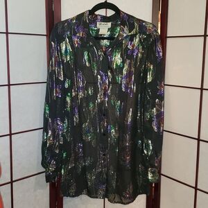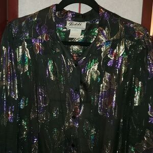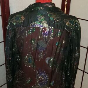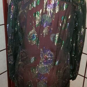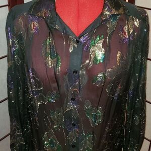 Teddi of Cali. Sheer Black Metallic Floral Blouse
