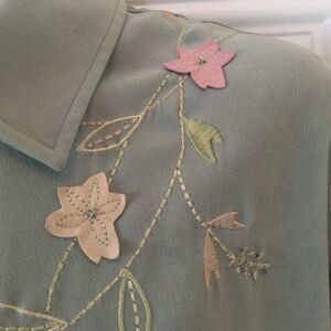 Teddi vintage green long sleeve jacket with appliques, beading, an embroidery