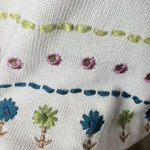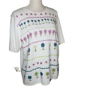 Teddi women’s Vintage Sz L short sleeve sweater Knit floral embroidered spring