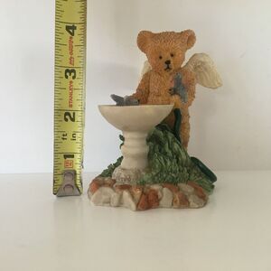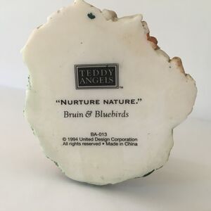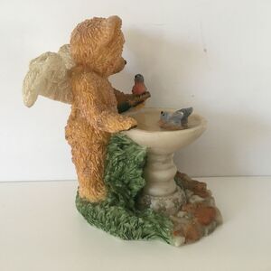 Teddy Angels Bruin & Bluebirds NURTURE & NATURE Birdbath & Birds Figurine 4"