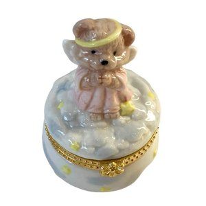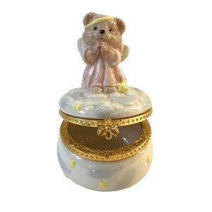 Teddy Bear Angel on Cloud Porcelain Baby/ Child's Keepsake Ring Jewelry Box