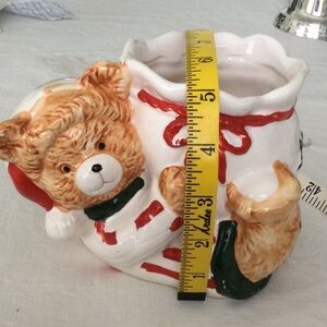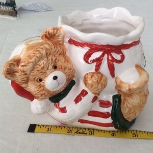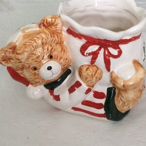 Teddy Bear Christmas Ceramic Planter-color red white & green