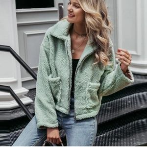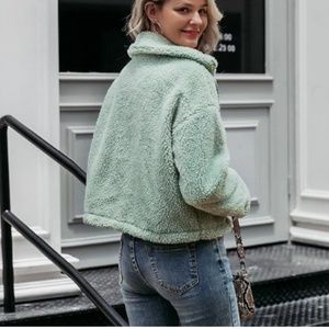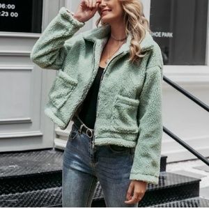 Teddy Bear Faux Shearling Cropped Jacket | Mint