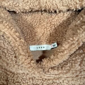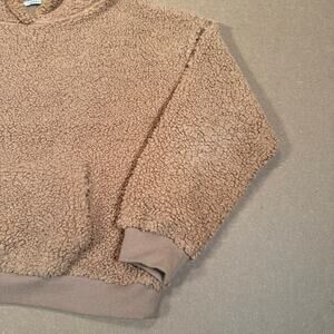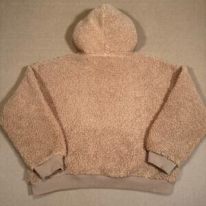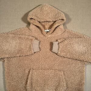 Teddy Bear Fleece Hoodie Lush Women’s Tan Fuzzy Cozy Pullover W/ Pocket Sz M