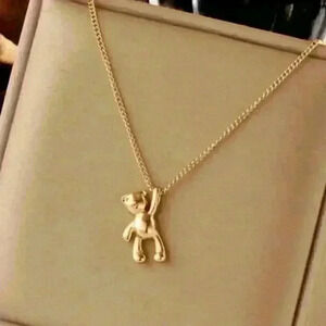 Gold Teddy Bear Pendant Necklace: This adorable necklace features a playful teddy bear pendant, crafted in a charming 18k gold filled finish. A perfect balance of whimsical and chic, this piece adds a cute and stylish touch to any outfit. Ideal for both casual and dressy looks