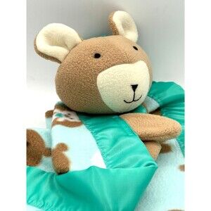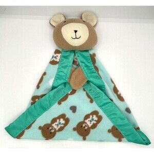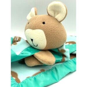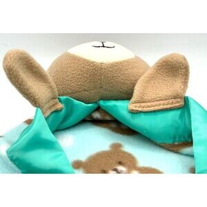 Teddy Bear Plush Large Lovey Soft Fleece Security Blanket Satin Trimmed Teal