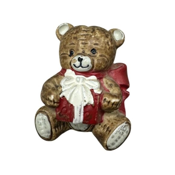 Teddy Bear Refrigerator Magnet present brown red Christmas READ