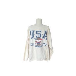 Vintage 90s sweatshirt with a teddy bear and USA Teddy American Style on the front. Please see measurements and condition below. Every garment we sell is authentic vintage! You will receive the exact item photographed. Condition: Very good vintage. Best fits women’s: Labelled Medium to large. Tag: chic Fabric: cotton 100%