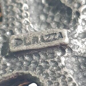 This adorable L Razza teddy bear trio brooch features metal in silver, bronze, and gold tones. Detailed with heart cutouts on the back, it makes a charming collectible.