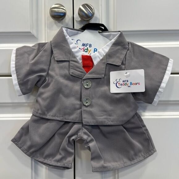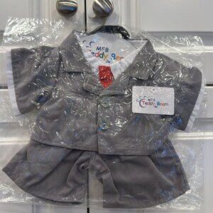 Teddy Bear Grey Suit with red tie & suit case. By MFB Teddy Bears Inc. Bear clothes. Bear outfit NWT