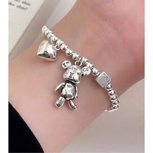Adorable stretch silver teddy bear heart beaded bracelet that is just charming. Stretchy and fits most sizes. Add this cutie to your collection