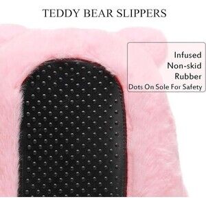 * 【Teddy Bears Slippers Size】: Medium Teddy Bear Slippers size is suitable: US 6-9 (Women)or US 5-8(Men). Teddy Bear slippers may feel a bit snug at first and then they will stretch a little to a customized fit after several wearing them. Easy slip-on slippers, Breathable, Non-Slip, Warm, Wear-resistant, Shock Absorption.