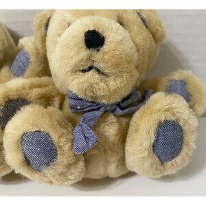 Teddy Bears With Blue Denim Paws & Bow Ties 4.5" Lot of 2 matching