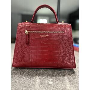 Flawless Teddy Blake Ava Small handbag in luxurious croco-embossed Italian leather. Finished in the rich Rosso Scuro (dark red) shade with elegant gold hardware, this structured top-handle bag is both timeless and bold.
