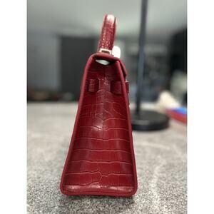 Teddy Blake Ava 11" Croco Leather Satchel – Rosso Scuro Red w/ Gold Hardware-NWT