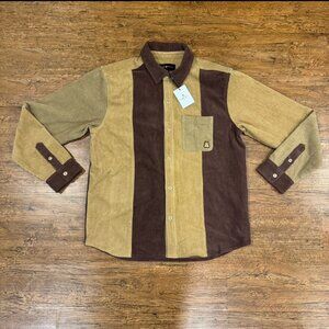 Teddy Fresh Brown Colorblock Corduroy Casual Long Sleeve Button Up Shirt Men's S