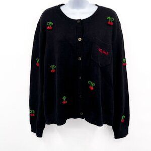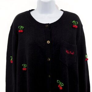 Teddy Fresh Cherry on Top Beaded Cardigan Sweater Top Black Red 3X Cherries