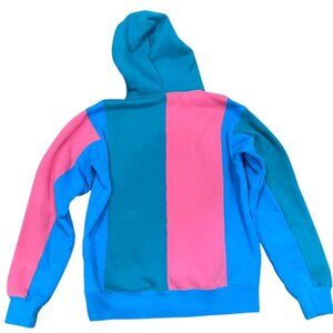 Teddy Fresh Color block Pink Blue and Teal Logo Hoodie Small