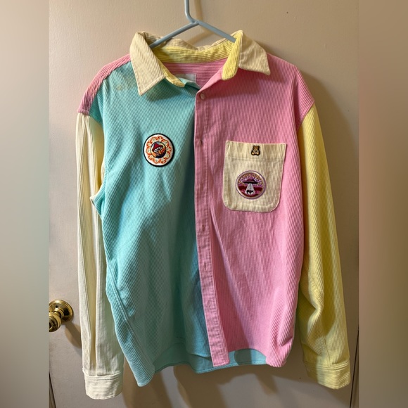 Selling this colorful Teddy Fresh Corduroy Color Block shirt is great condition! It features 2 patches added by me and a tiny bear patch from TF on the chest pocket. Size medium.