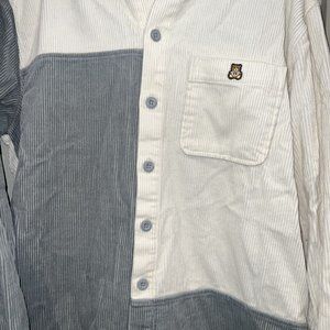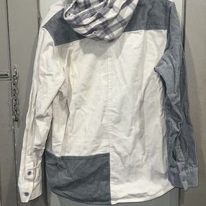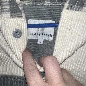 Teddy Fresh Corduroy Jacket With Flannel Hood Colorblock Cream/Grey Size Large