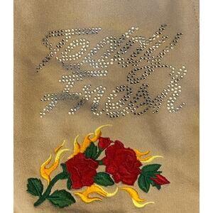 Teddy Fresh Embroidered Roses Rhinestones Thick Joggers Pants Women’s 2XL Beige
