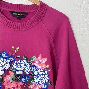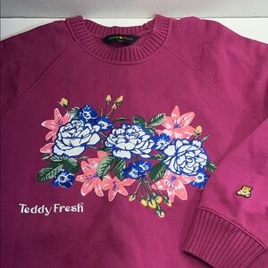 Experience the perfect blend of comfort and style with the Teddy Fresh Pink Floral Sweatshirt. This top features a delightful floral design on the front, adding a playful touch to its classic pullover style. Crafted from 100% cotton, it's ideal for casual, everyday wear. Gentle Wear Overall Good Condition See All Photos Approximate Measurements Open To Reasonable Offers Bundle 2 Or More Items Save 20% Off Order
