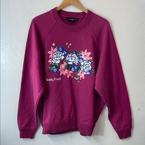 Teddy Fresh Floral Garden Grandmacore Embroidered Sweatshirt X-large XL