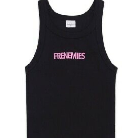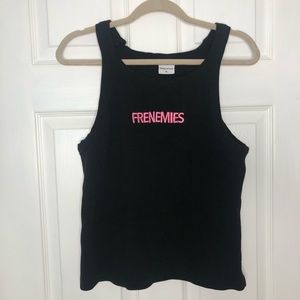 -black ribbed tank with pink embroidered Frenemies logo