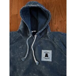 Teddy Fresh Hoodie Pullover Blue Acid Wash Tie Dye Pockets Size XL Unisex