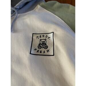 Teddy Fresh Hoodie Pullover Pastel Colorblock Green Gray Pockets Size L Unisex