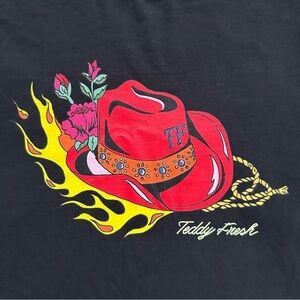 Teddy Fresh Long Sleeve Tee Giddy Up Cowboy Hat Flames Crewneck Black S NWT New