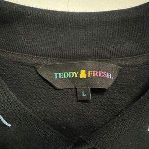 Teddy Fresh mens pullover sweatshirt in size Large. Features a black base with a unique embroidered cherry design. Classic streetwear style with quality construction.