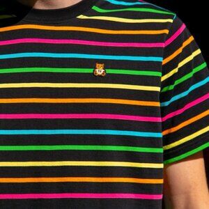 Teddy Fresh Men's Multicolor Striped T-Shirt Crewneck Streetwear Grunge Medium