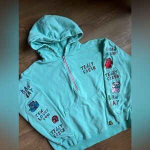 Teddy Fresh x Artist Isa Beniston I Need A Hug Half Zip Hoodie Sweatshirt Y2K M