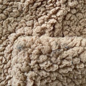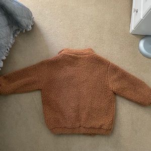 Trendy, brown teddy coat. Size Large. No longer a size tag on jacket but remember from my purchase. Has a zipper. Bottom of jacket has elastic band for stretch! Pictured: Slight smudges on top of left pocket