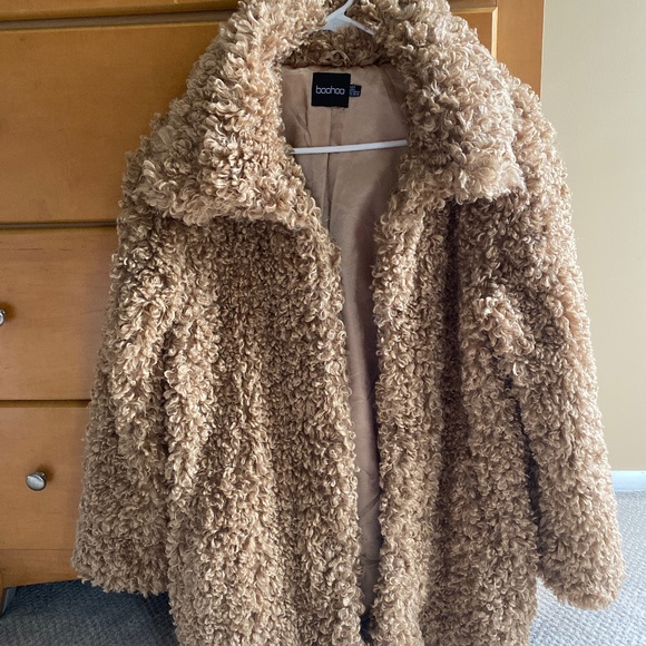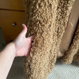 Very thick and heavy Teddy jacket. Size 4. Wore twice. 29inches I’m length. Sleeves measure 25inches. Sits on my waist. Camel color.