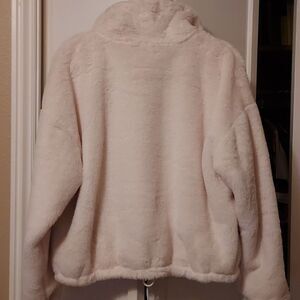 Teddy Jacket Faux Fur Ivory Cream Zip Up Size M