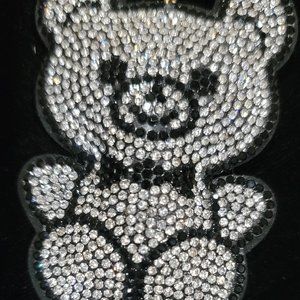 A cute teddy keyring with rhinestones.